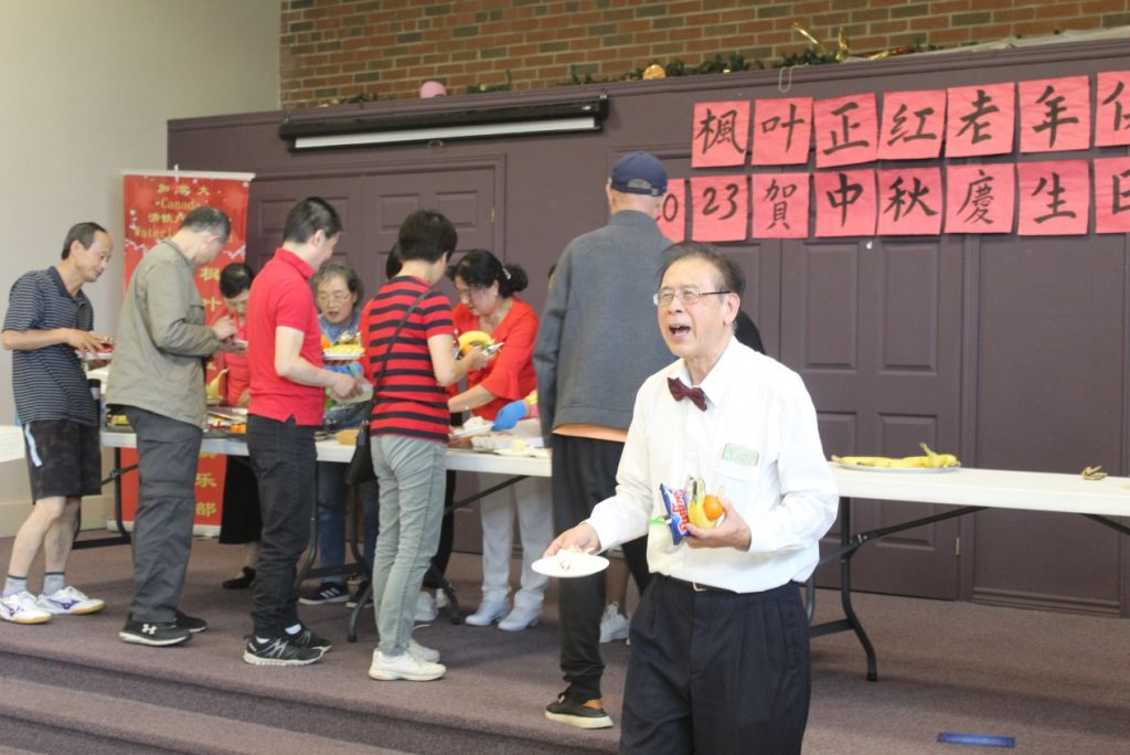 在阳光明媚的金秋十月,2023年10月1日,枫叶正老年俱乐部举办了国庆、中秋及三四季度会员生日的联欢庆典。大厅内洋溢着欢声笑语,桌上摆满了琳琅满目的水果、小吃、生日蛋糕和月饼,气氛热闹非凡。