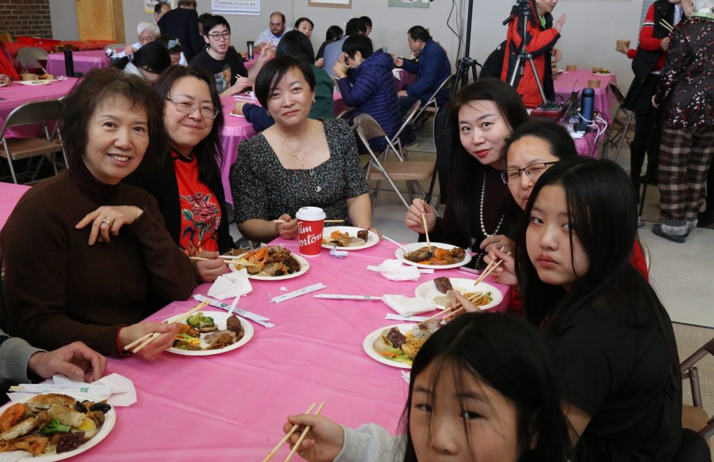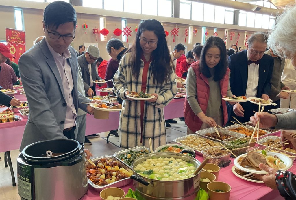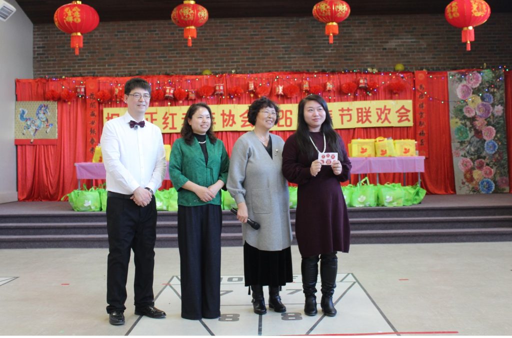 百家盛宴:佳肴飘香与幸运抽奖 现场最令人震撼的莫过于由会员们亲手操办的“百家宴”——近120多道南北各色拿手好菜,从传统的手工鱼丸子汤到红枣莲子百合银耳羹,到德克萨斯风味烤排骨,煎炒蒸炸琳琅满目,三条长桌一排,摆满了三排。规模之大在本地社团中实属罕见。在会员们品尝“舌尖上的家乡味”时,滑铁卢华人商会(WCBA)会长顾冰也发表了热情的致辞。随后进行的抽奖环节更是惊喜不断,在顾会长的号召和互动下,现场欢声笑语此起彼伏,大家在畅叙乡情的同时,也收获了满满的幸运。